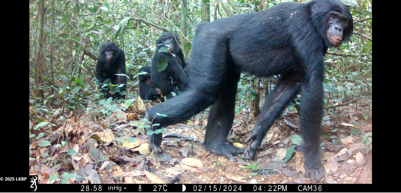 Figure 1: A common technique to assess the diversity ad abundance of wild animals is the deployment of camera traps. The records can provide close ups that facilitate the identification of the species and in some cases such as bonobos and other larger mammals, allow recognition on certain individuals.