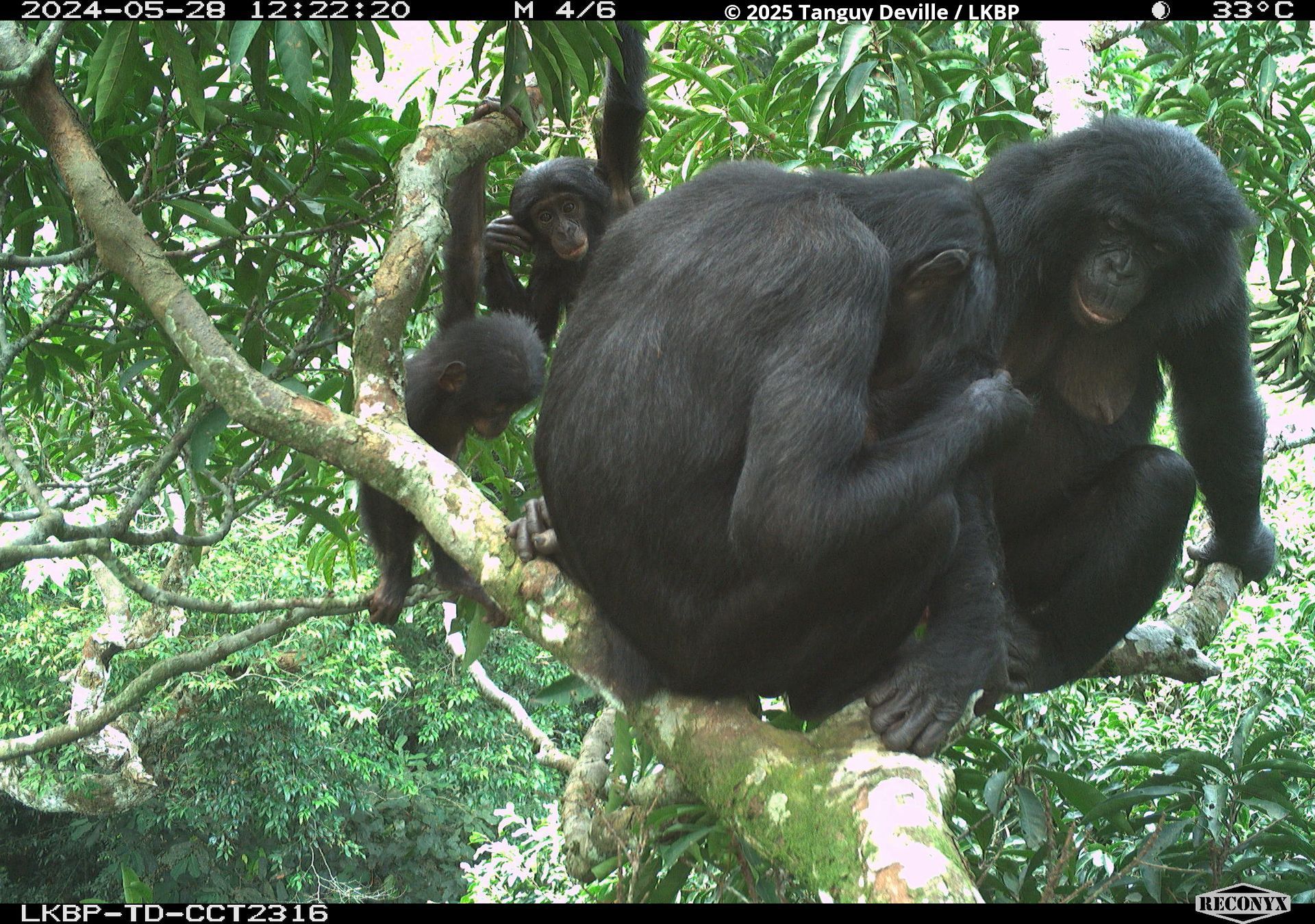 The biodiversity of tropical rainforests is proverbial, but it is nothing that can be seen easily. Dense vegetation obstructs the view and often you can't see the wood for the trees. If you want to get an overview of the tangle of plants, you should be familiar with animal calls. Many species spend the majority of their time in the canopy and what happens there often remains hidden to the terrestrial biped. If you climb up the 20 to 30 meter into the canopy of giant forest trees, you will find yourself in a new world. Fruit-bearing trees have a magnetic effect and become traffic hubs for days or weeks. Bonobos are just one of many species that move through the canopy in search of fruit (Figure 1). Like humans, they have a preference for ‘ripe’ fruit. Other species reach for it earlier and do not wait until the fruit reaches its maximum nutrient content. To capture the race for harvesting jungle trees, a 24/7 observation design is needed. Camera traps offer an ideal solution. They are active day and night and not only record who is currently settling in the tree, but also allow projections to be made on the amount of food consumed. With the support of the Foundation for Animal, Nature and Species Conservation, Tanguy Deville (Figure 2) will install camera traps in a large number of fruit-bearing trees with cameras and thus record the consumption of fruit in the LuiKotale study area over many months. Tanguy is an expert in tree climbing and has tested the technical and logistical requirements for the demanding study in previous field trips. Meeting bonobos and other forest dwellers at eye level is one of the most exciting experiences for him. The support of the foundation enables an unusually ambitious project that will provide insights into a habitat that is still largely unexplored and bring us a great deal closer to the endangered bonobo.
