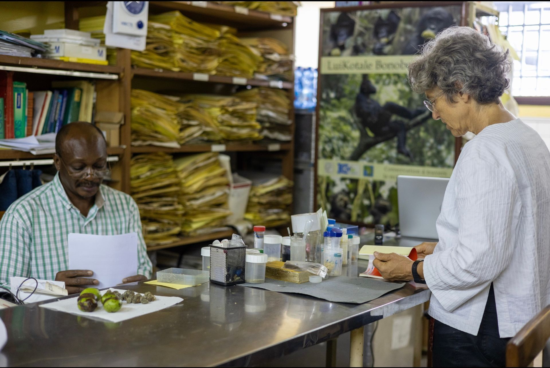 Afin de préserver la biodiversité, la protection durable de la flore et de la faune naturelles du bassin central du Congo revêt une importance capitale. Connaître les caractéristiques des animaux et des plantes de l’écosystème est tout aussi important. Soutenu par Bonobo Alive, Dr. Musuyu Muganza de l'Institut National de Recherche Biomédicale examine les ingrédients des plantes médicinales consommées par les humains et les bonobos. Parallèlement, il enseigne aux étudiants de l'Université de Kinshasa et est ainsi devenu un multiplicateur pour la mission de Bonobo Alive.